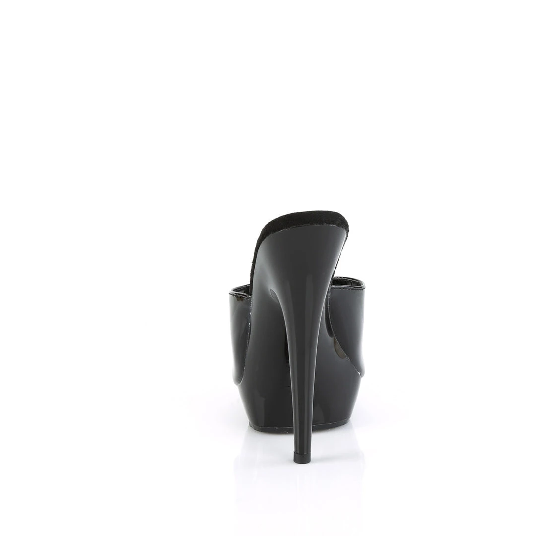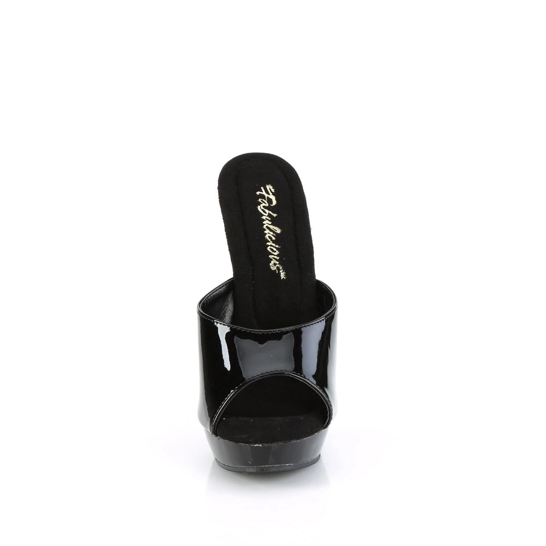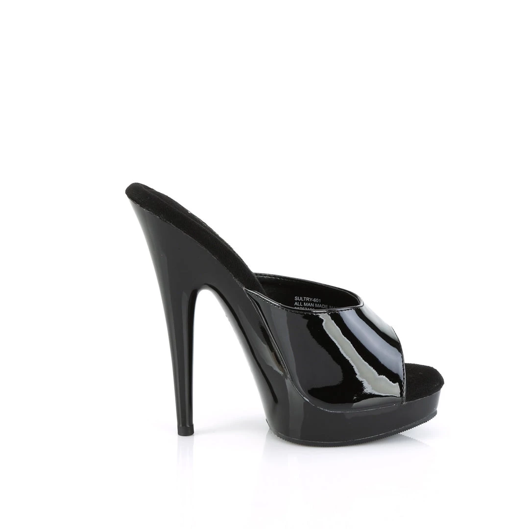 FABULICIOUS SULTRY-601 BLACK SHINY 6 INCH HIGH HEEL SLIDE ON SHOES SIZE 7