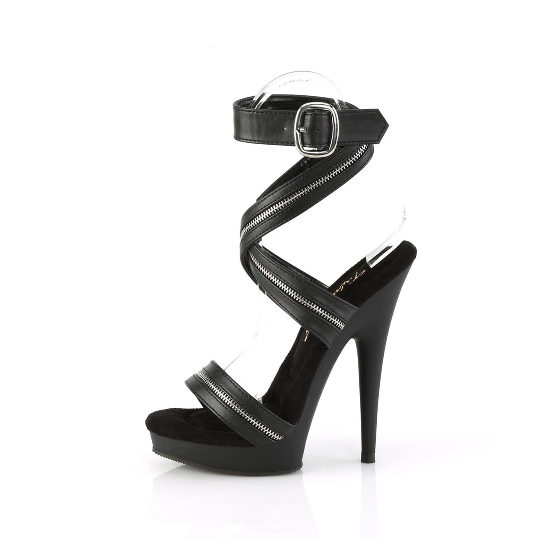 | 6″ (152mm) Heel, 1″ (25mm) Platform Zip Closure-Inlaid Wrap-Around Sandal w/Buckle. Includes a Pair of Matching Color Gel Insole for Arch Support and Comfort |