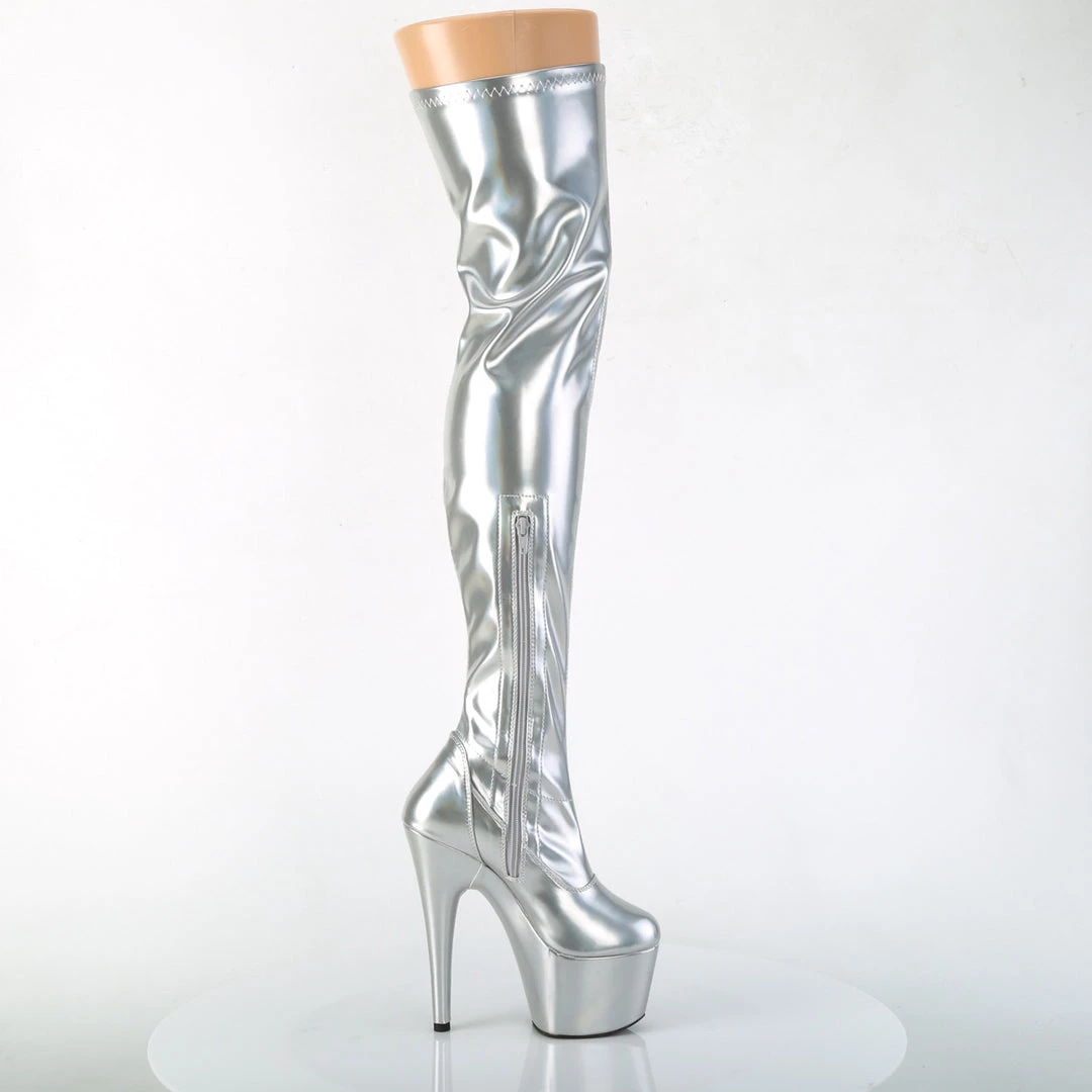 PLEASER ADORE-3000HWR SILVER 7 INCH THIGH HIGH BOOTS