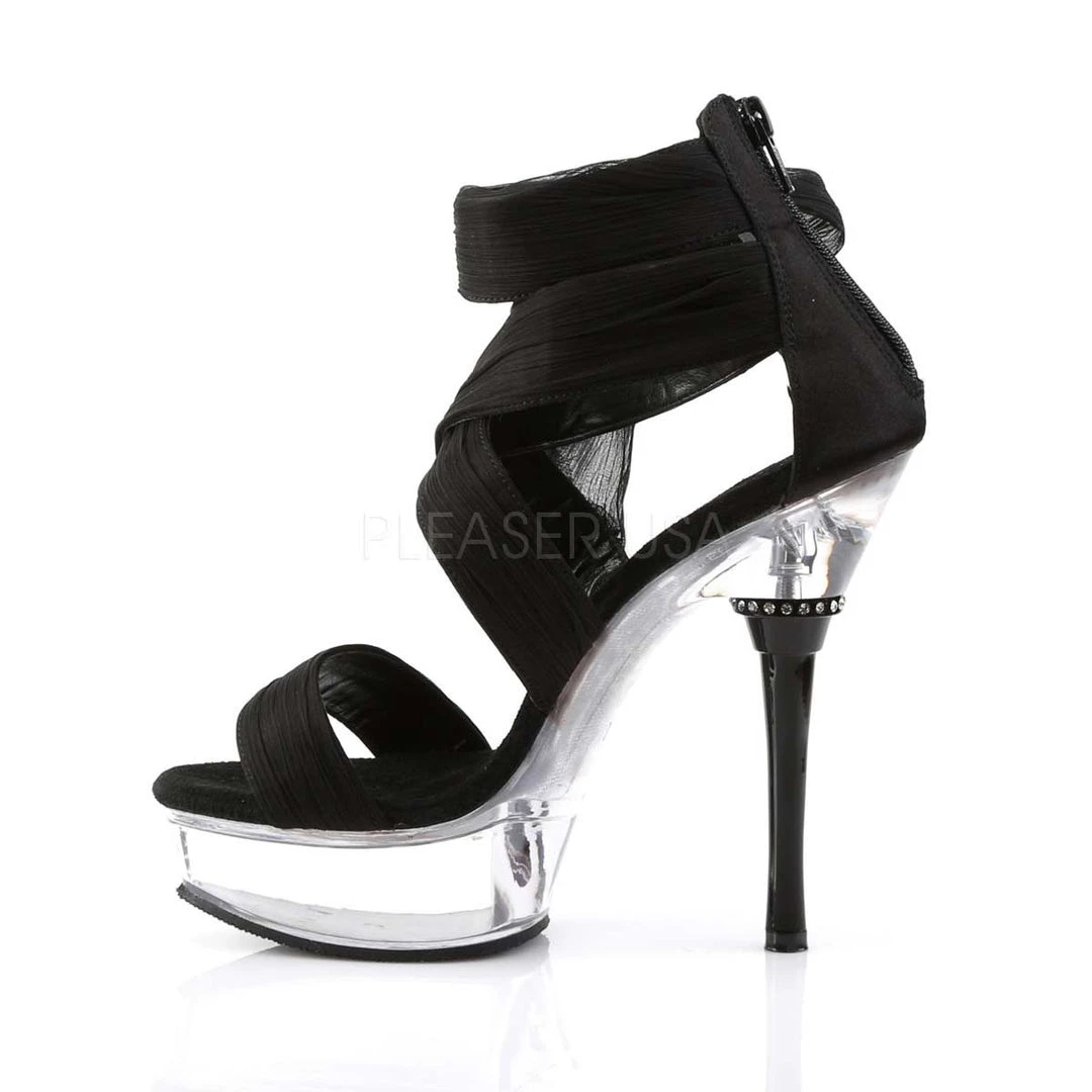 5 1/2″ (14cm) Chrome and Rhinestone Heel 1 1/2″ (3.8cm) Platform