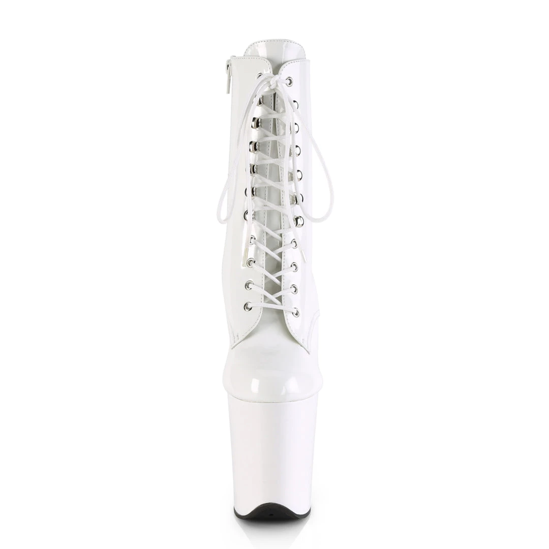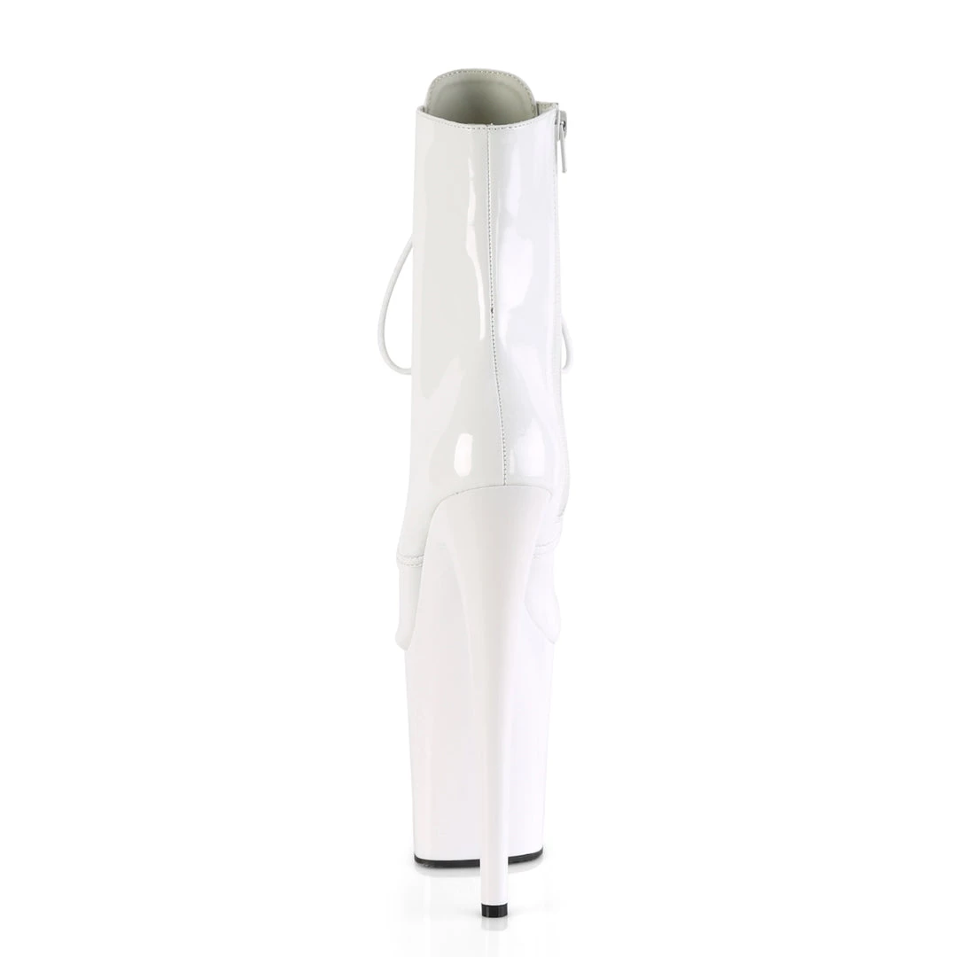 | 8″ (20.3cm) Stiletto Heel, 4″ (10.2cm) Platform Lace-Up Front Ankle Boot, Inside Zip Closure | |