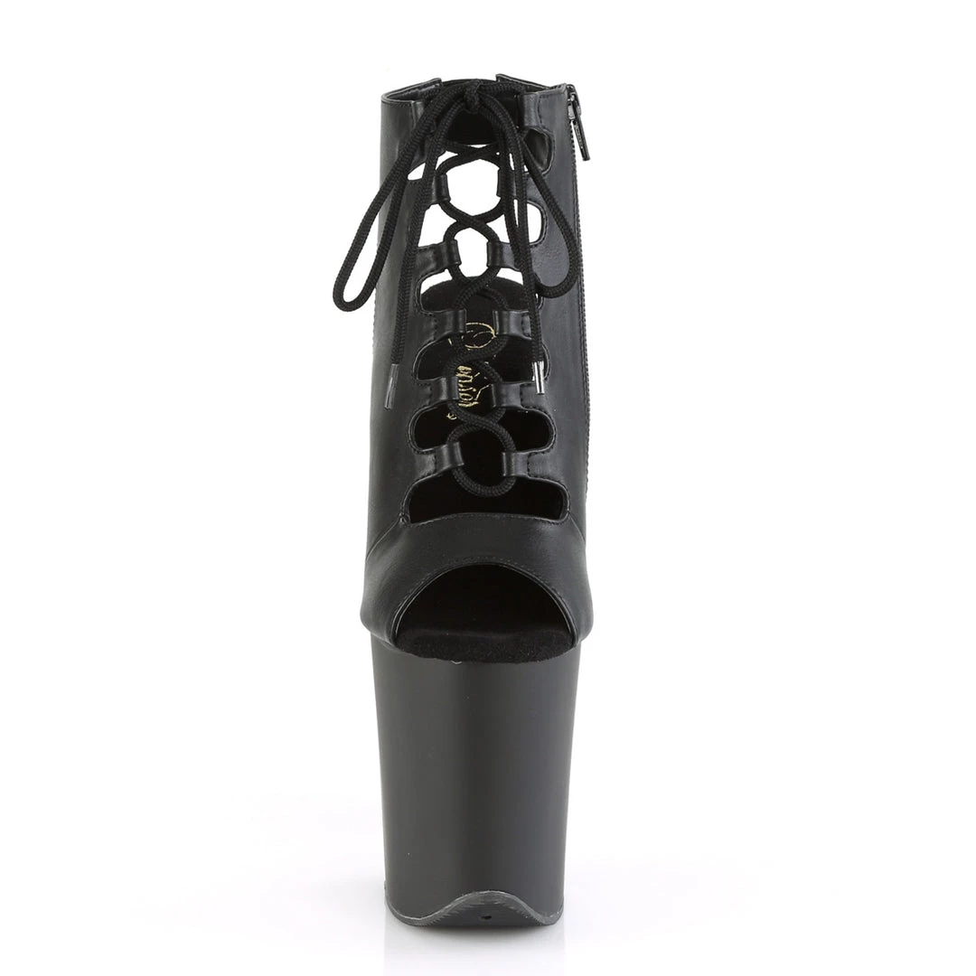 | 8″ (200mm) Heel, 4″ (100mm) Platform Open Toe/Heel Sandal w/ Lace-Up Ties & Wrapping Straps Closure, Full Inner Side Zip Closure |