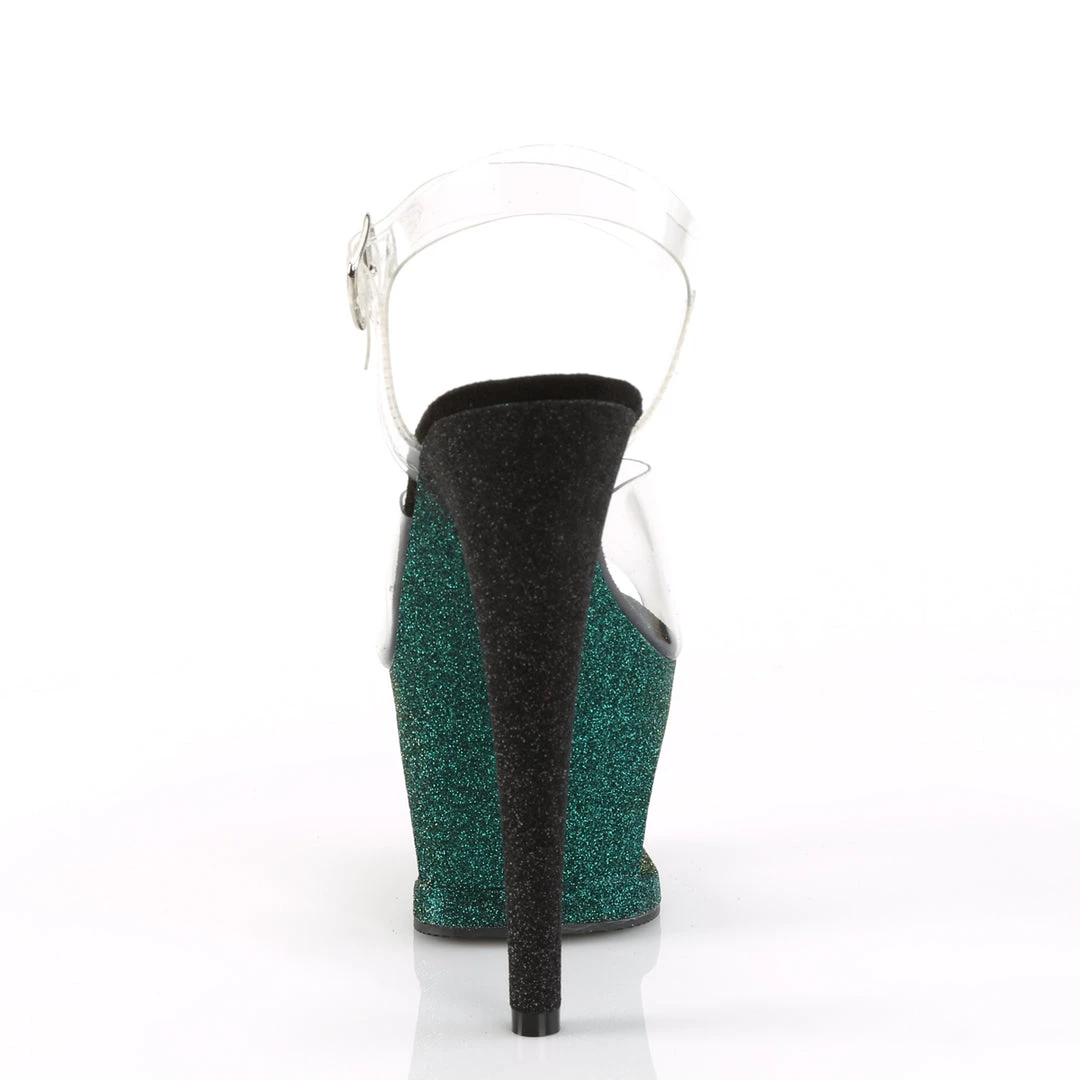 PLEASER MOON-708-OMBR GREEN EMERALD BLACK GLITTER 7 INCH HIGH HEEL PLATFORM SHOES SIZE 8
